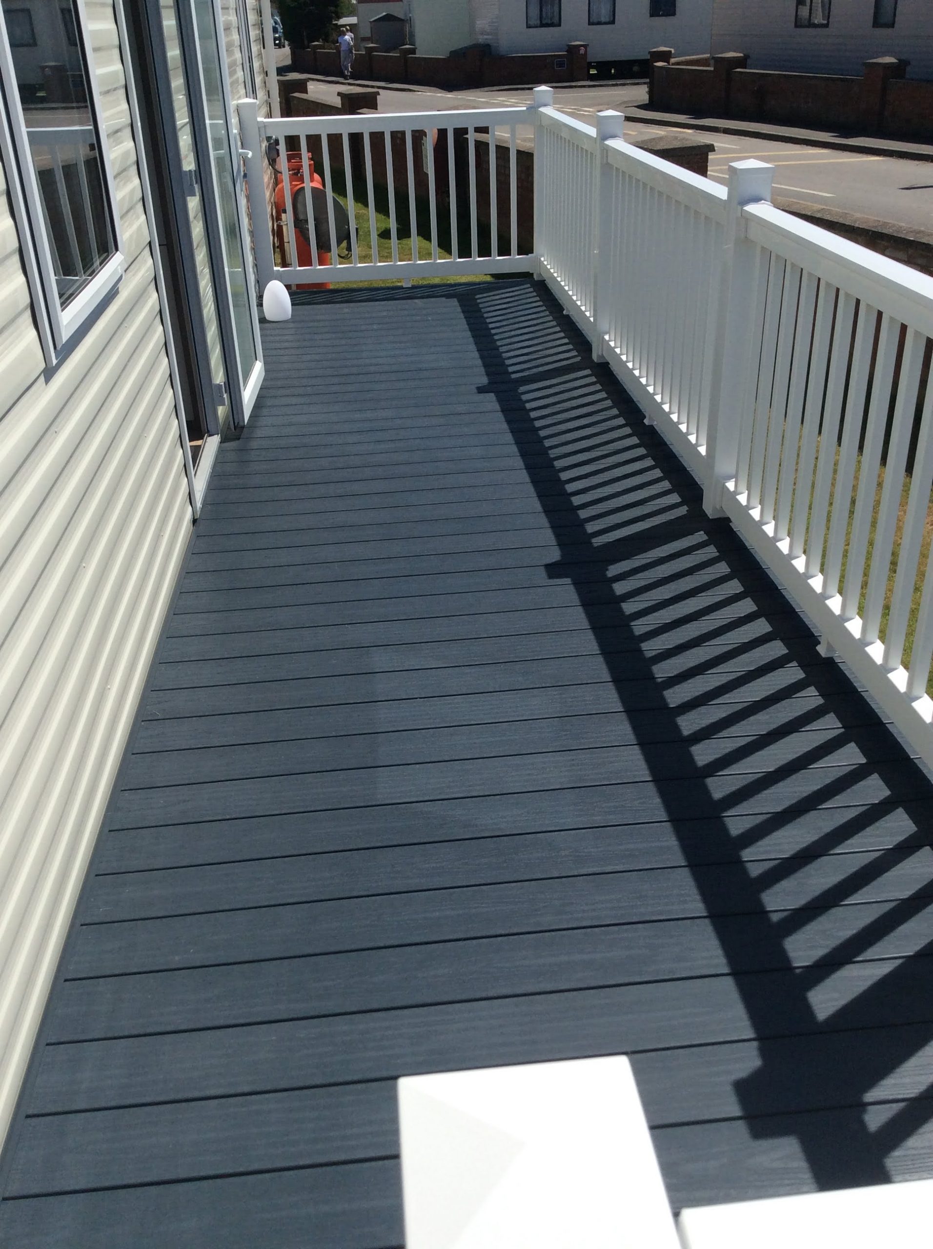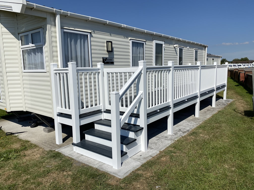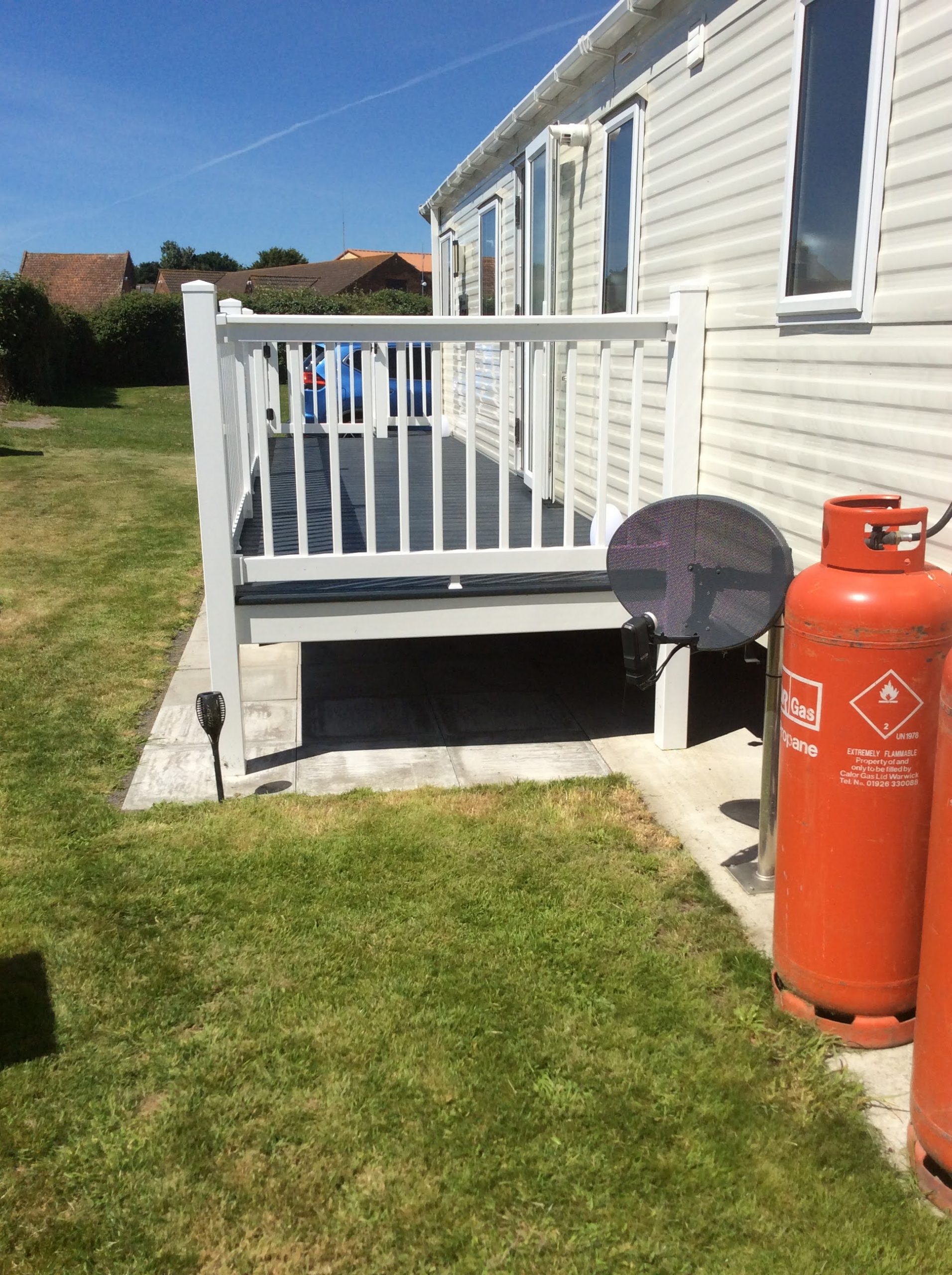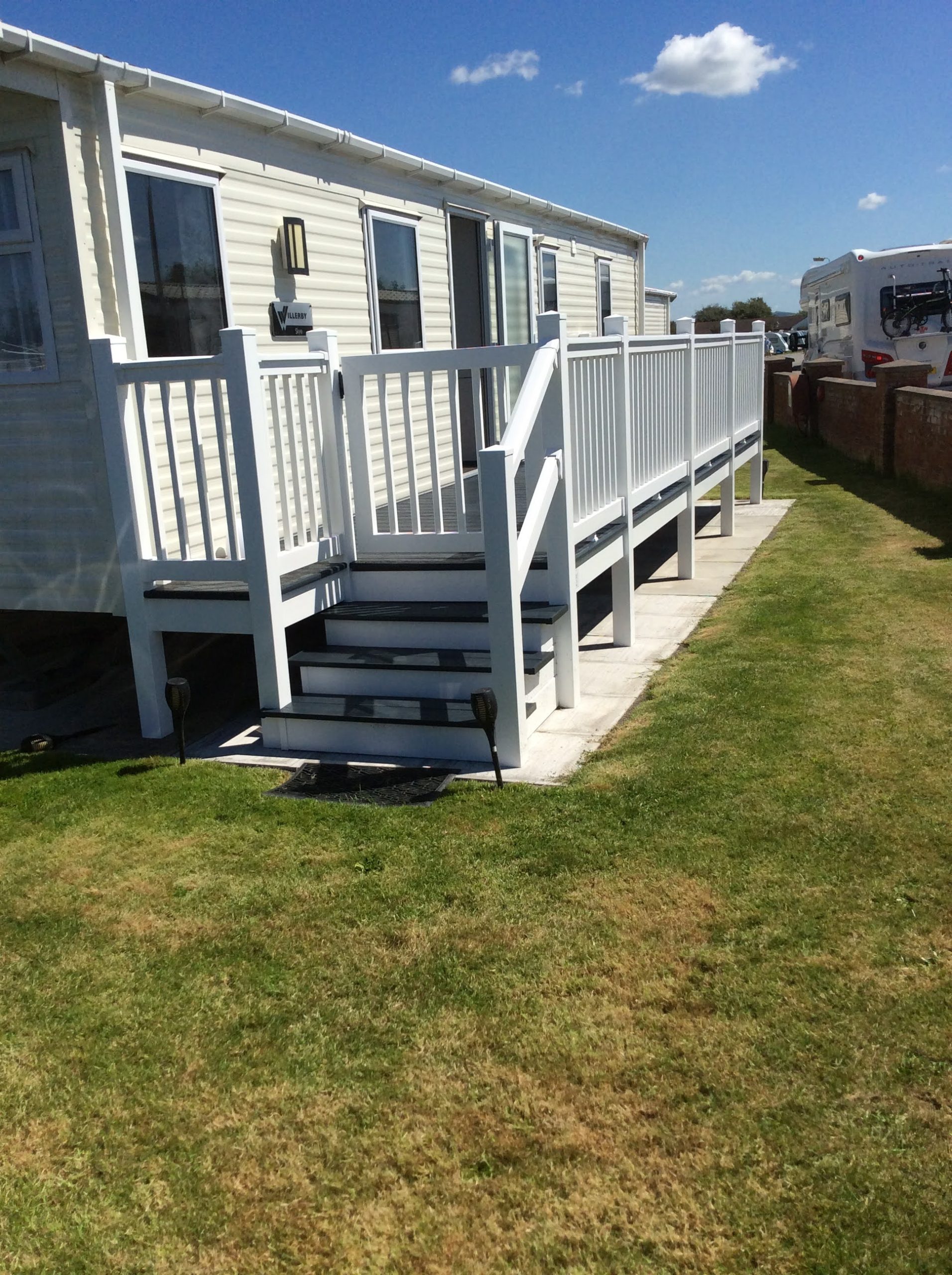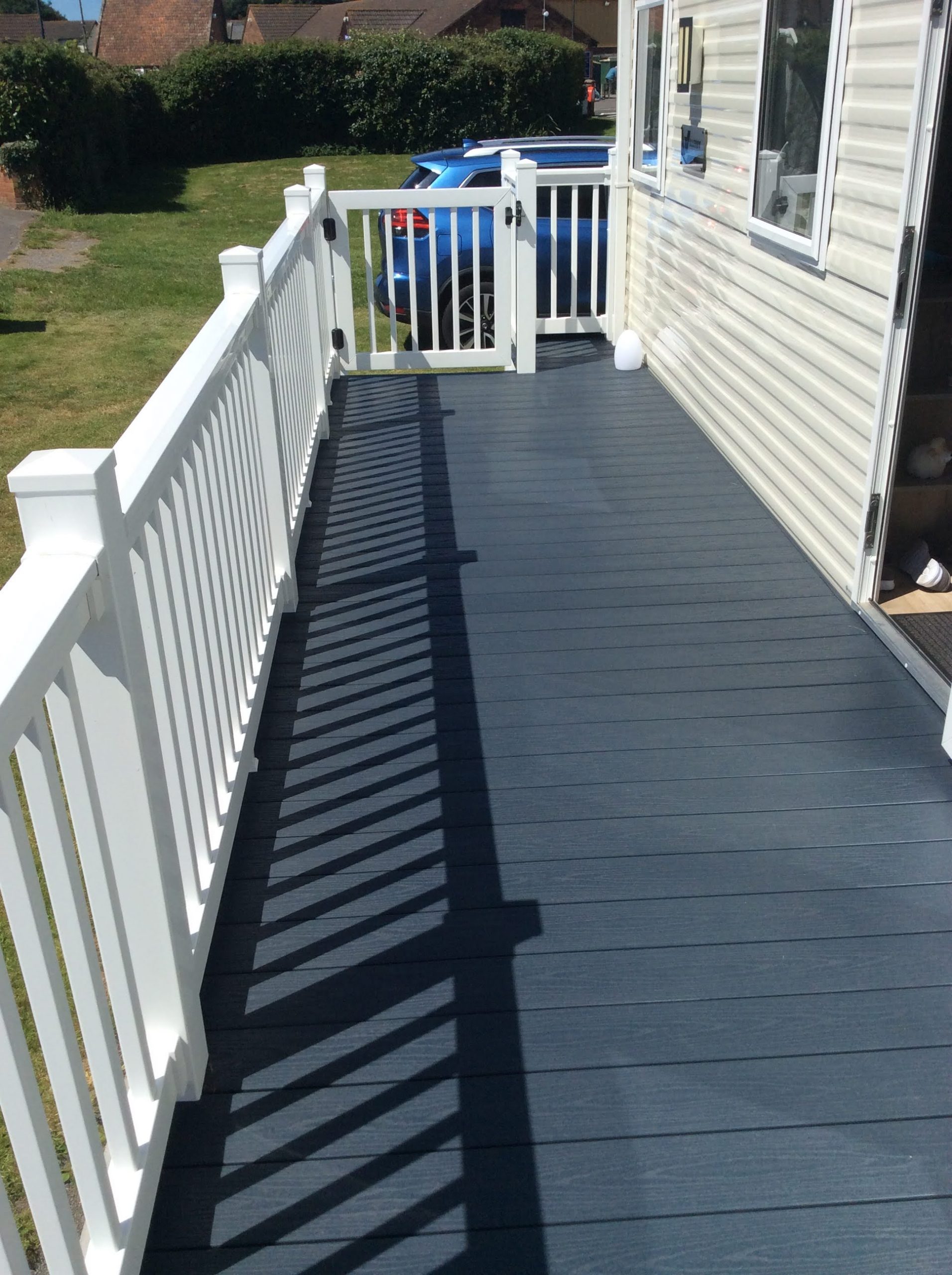 The decking was purchased through our static caravan site. They used a company called Fitrite. The sites sales department had samples of all the colours available, so we could see exactly what the colours would look like against our own caravan. As our campsite has used these for many years, a walk around the site looking at the other caravans gave us ideas on what was possible.