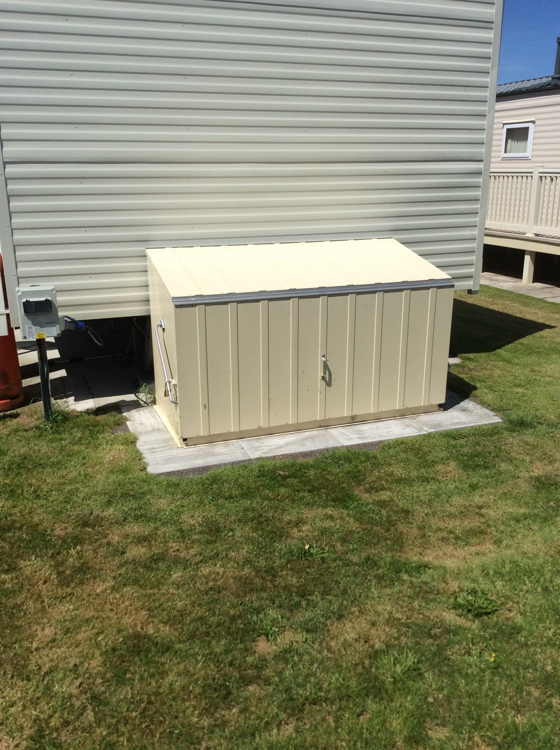 To get the decking we wanted, we needed to move the storage box to the back of the caravan, So patio slabs were laid at the back of the caravan to place the storage box on. After this was completed, the box was moved.