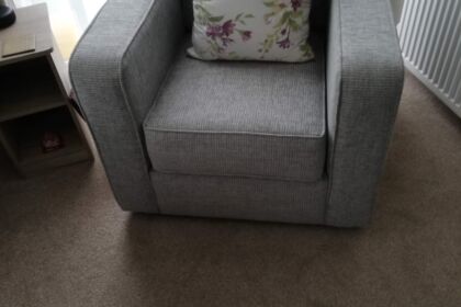 It’s a very spacious lounge that has wrap around seating, so it can easily accommodate 6 – 8 people. The single chair was an extra we asked to be included when we purchased the caravan. All the single points hold USB’s for charging phones and tablet devices, the Skye’s lounge also holds a double sofa bed for extra sleep facilities. This open plan space is a slightly different take than other living areas, making it modern and quirky.